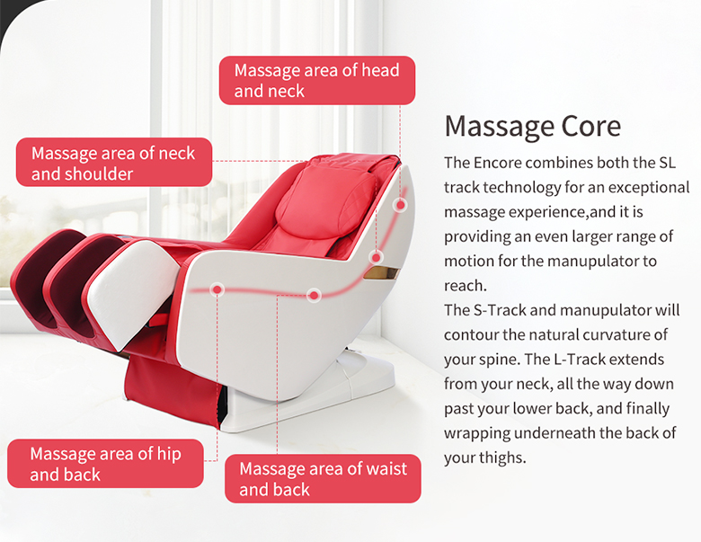 MA6201 combines both the SL and shoulder track technology foran exceptional massage experience, and it is providing an even larger range of motion for the manupulator to reach. The S-Track and manupulator will contourthe natural curvature of your spine. The L-Track extends from your neck, all the way down past your lower back, and finally wrapping underneath the back of Massage area of hip your thighs.