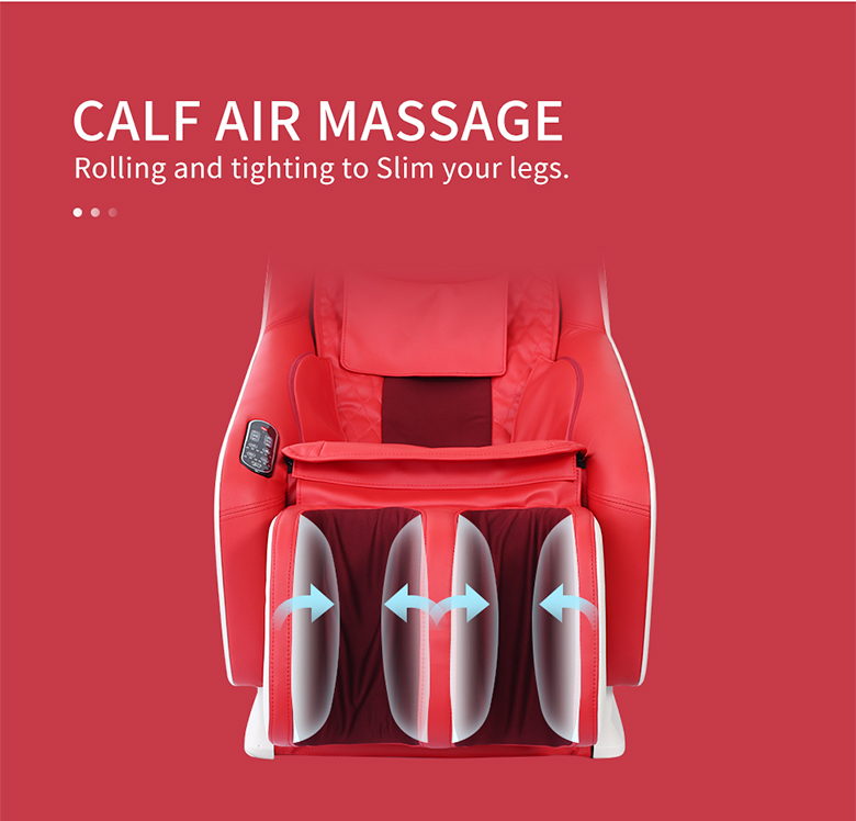 The MA-6201 features a heating mode on the back area which can be manually controlled on the side mounted control panel. Heating therapy is a great compliment to the massage rollers and airbag massage. Heating the body' s temperature is known to increase blood circulation and loosen tense muscles. The MA-6201 has heating pads located on the Lumbar area and calves which enhances the effect of the massage.