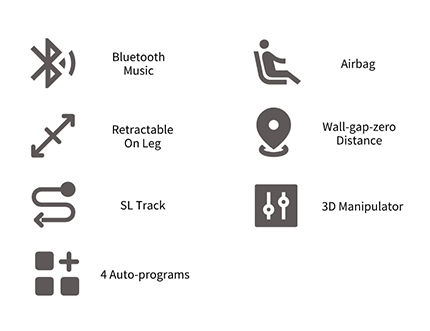 MA-6201 only requires about 0.8㎡ space and 1.5cm space from the wall allowing it to take small footprint in the room.When reclining the chair, the backrest will slide forward to counteract the space created by lying down.